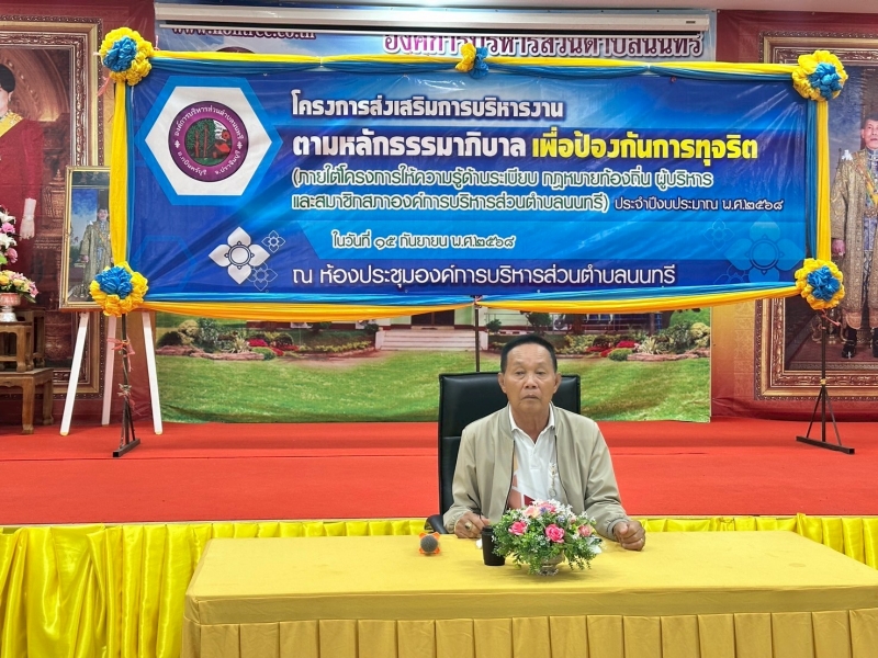 โครงการส่งเสริมการบริหารงานตามหลักธรรมาภิบาล เพื่อป้องกันการทุจริต (ภายใต้โครงการให้ความรู้ด้านระเบียบ กฎหมายท้องถิ่น ผู้บริหาร และสมาชิกสภาองค์การบริหารส่วนตำบลนนทรี) ประจำปีงบประมาณ พ.ศ.2568