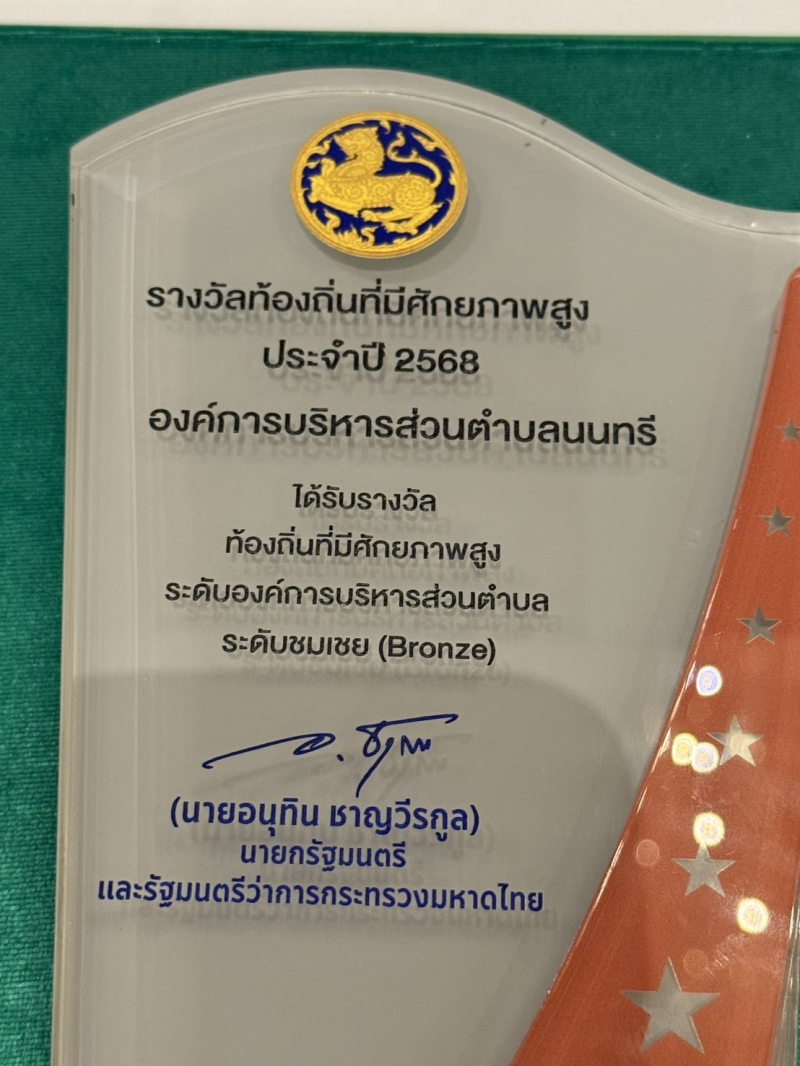 องค์การบริหารส่วนตำบลนนทรี ได้รับรางวัล ท้องถิ่นที่มีศักยภาพสูง ประจำปี 2568 ระดับองค์การบริหารส่วนตำบล ระดับชมเชย (Bronze)